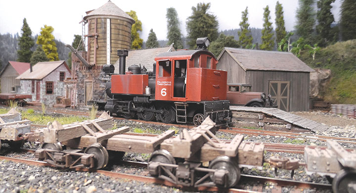 Scott Maze bashed this realistic model as a pilot model with the 3D parts described by the author in this article.The 3D parts have a series of fine grooves due to the nature of the printing process. So, I filed and sanded across these small grooves to eliminate any high spots. Then I sprayed the parts with a filler/primer paint. Auto accessory stores and Lowe’s Home Depot carry suitable spray cans of this paint. Then I sanded the paint coating down with strips of fine sandpaper, and polished their surface with fine jewelers files. I added the O scale Micro-Mark decal rivets included with the 3D parts, because I wanted to depict an older locomotive, rather than a newer one, with modern welds.This photo shows tanks and cab in place on the Mogul with the detail parts I used. I chose fluted plastic domes by Doug MacLeod (www.macleodwestern.com), a Precision Scale brass bell and Bachmann generator. A stock Mogul stack was retained, but I added a Lambert Loco Works printed spark arrestor. (www.lambertlocomotiveworks.com). Tichy hex head bolts were used on cab and roof to simulate bolted-on sheets rather than riveted ones.The crew is on board and the new running board that supports the side tank can be seen.The fuel bunker now has extension boards and wood load. The model has been lightly weathered and lettered with dry transfers.Here is Al Judy’s 2-6-2T hard at work on the lumber branch on his On30 layout. It was kit bashed using KitBash 3D parts.
