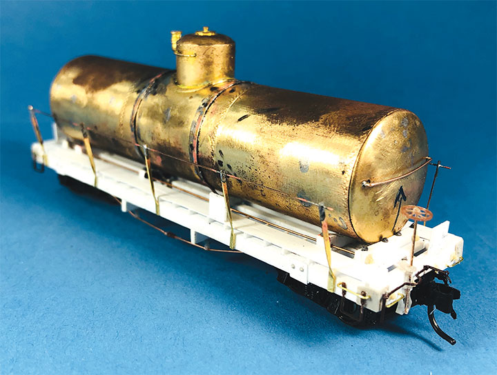 I’ve always been interested in the oddball equipment that the narrow gauge railways collected and I enjoy the challenge of trying to replicate these cars in miniature. When I saw Robert (Bob) Stears’ plans in the November/December 2020 GAZETTE for Conoco tank car number 14, I knew this was a prototype that I wanted to model. A few years before his passing, Jim Vail had given me a box of brass tank car bodies that Dick Truesdale of Westside Models had given him. Since then, I had been looking or a suitable project for these tanks, and here it was. With Bob Stears’ plan in hand, I compared the brass tanks to the drawing. Unfortunately, none were even close to the dimensions of CONX 14. I thought that the project was over until I noticed that the plan listed the tank sizes for CONX 12 and 13. All three cars shared the same frame, but the tanks were all different. In that box of tank bodies, I found a perfect match for number 13 and a very close match for number 12. My project was back on track! I switched directions and decided to build 12 and 13 and leave CONX 14 for another day.