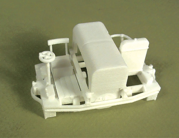Simon Dawson, www.rue-d-etropal.com. I have always wanted an O scale Simplex gasoline locomotive. So when I read Jon Haworth’s article on his 3D, 7mm scale, 20 h.p. bow-framed model in the December 2020 issue of Narrow Lines (the journal of the 7mm Narrow Gauge Association) I perked up. This article tells how Jon detailed his 3D superstructure, added a mechanism and driver, and painted it. He also provided contact information for the locomotive, mechanism, and driver.