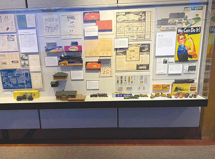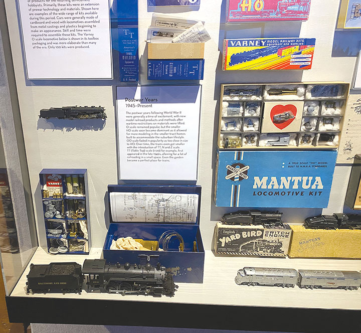 The United States’ first model railroad magazine, The Modelmaker, first published in 1924, is followed by the Depression Years. During the worst depression in our history, the hobby boomed. The Model Craftsman (now Railroad Model Craftsman) appeared in March 1933 (I was three months old), the Model Railroader in 1934, and the NMRA in 1935, all illustrated with artifacts. Major manufacturers also got started during the Depression such as Varney, Mantua, Lobaugh, Scale Craft, Walthers, Westbrook, the Structure Company, and many others are all illustrated with kits and models. Some of the kits have been broken out and displayed so you can really see what modelers in the Depression Years had available.