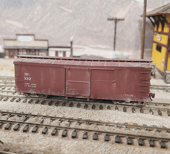 When I read Craig Symington’s article on HOn3 kits in the November/December 2021 GAZETTE I was specifically interested in his comments about Rail Line boxcars. I too believe these cars are some of the nicest cars to build. However, the metal roof is not often found on western coast narrow gauge lines. So, I undertook a little kit bashing and added scale styrene 2 x 6 pieces between the cast roof boards, removed the end roof walks, and made my car a little sway backed, by cutting or breaking the thin plastic under the side door frames. Then I painted and weathered my car giving it a unique western look.