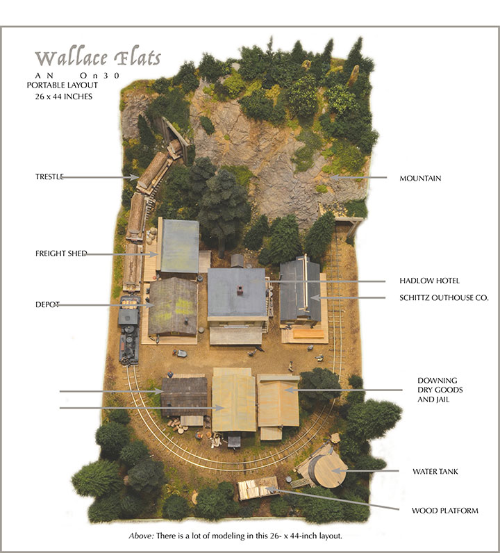 A while back I needed a diversion from my HO scale logging layout (see September/October 2017 GAZETTE), so I decided to try the world of On30. Since there was a need for a small On30 display layout to take to our local train shows, and I wanted to show that you could build a highly detailed layout in a small space, I decided to go ahead with my small layout and name it Wallace Flats after my late father who was a proud supporter of my model railroad endeavors.