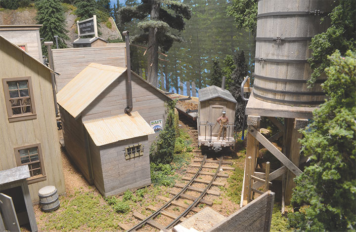 Construction of the structures began with a base of 0.060-inch-thick styrene on which an outer skin of individual wood boards were glued. I use an inner styrene base on all the structures to add stability and make them rigid. Grandt Line windows and doors were used along with whatever other details I could find. Roofing materials varied from tar paper, cedar shake and corrugated metal materials for an interesting look. Weathering of the buildings was done with an India ink and alcohol mixture along with some pastel/chalk pigments, and the odd bit of dry brushing.