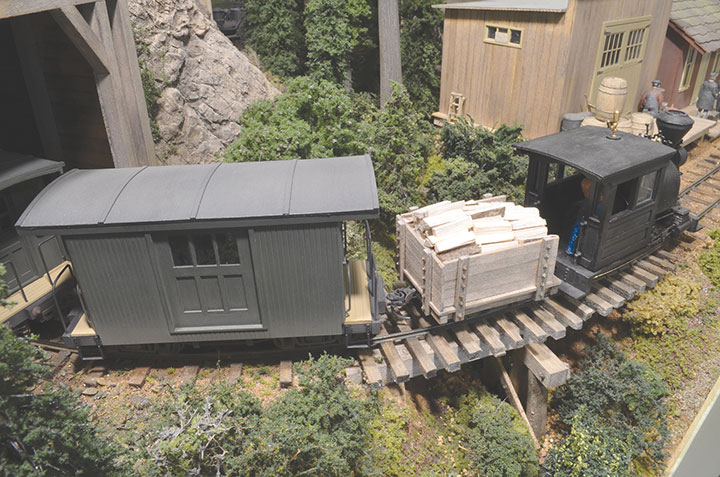 The freight cars are a mixture of log flats, ore cars, short flatcars, and a couple of cabooses. I even have a small two-car passenger car consist I can let loose. All the freight and passenger cars are scratchbuilt as I prefer to create my own rolling stock.