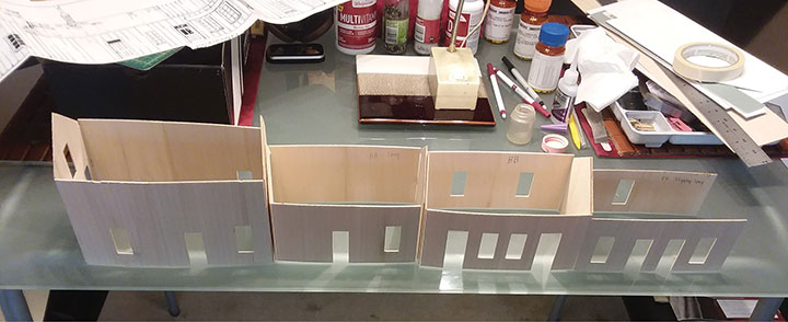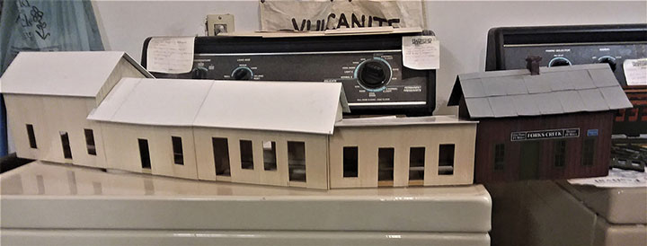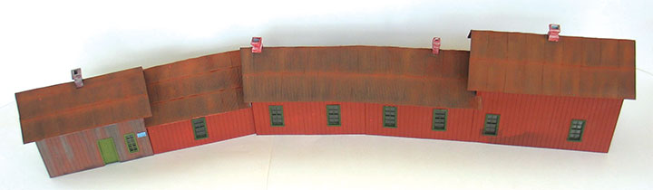 The various roof sections are artist’s illustration board cut to fit the angled sections. At this point I had to decide how I was going to approach applying all that corrugated roofing. The station kit used paper corrugated strips, which looked okay, but I wanted something a little more realistic.
